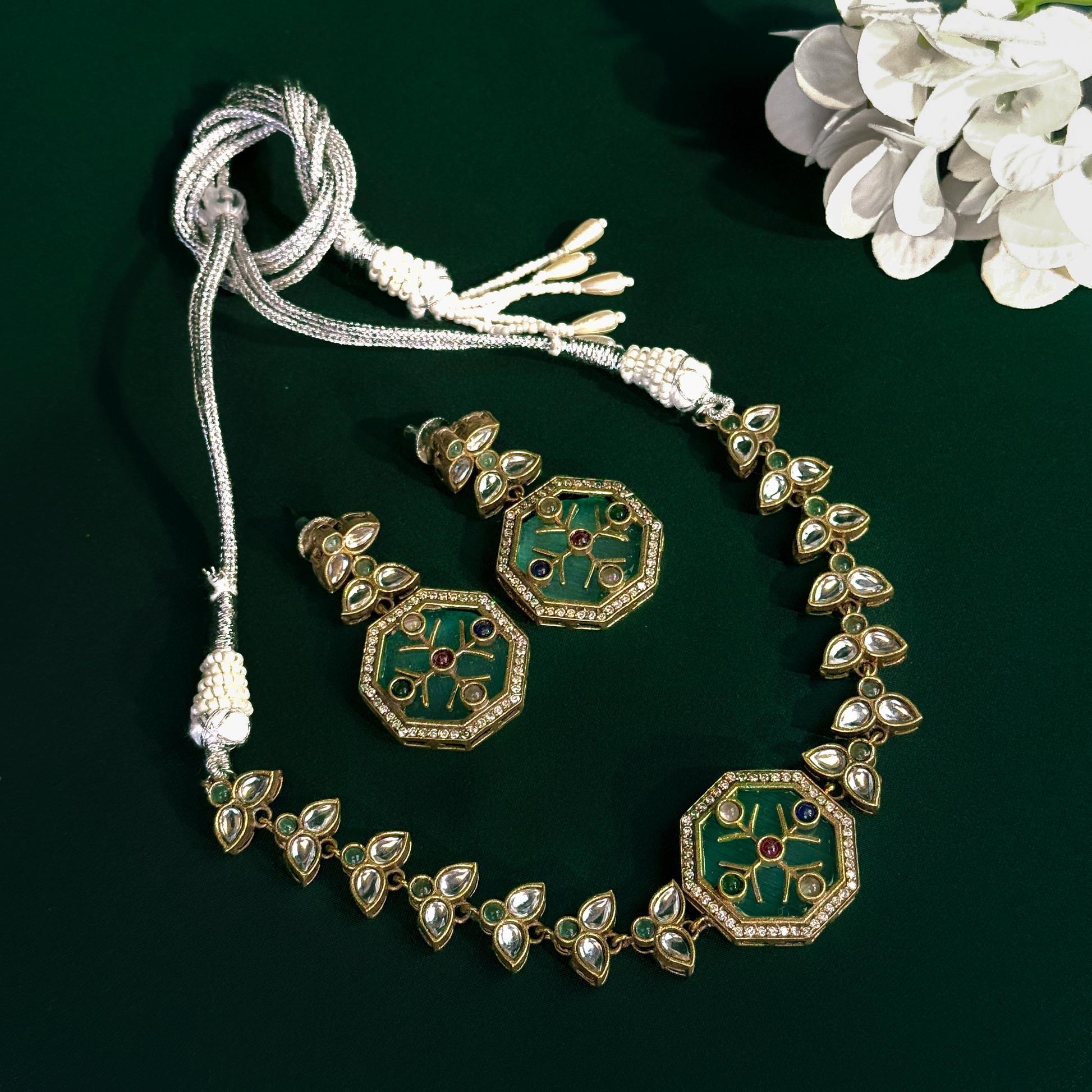 Emerald Enamel Kundan Se