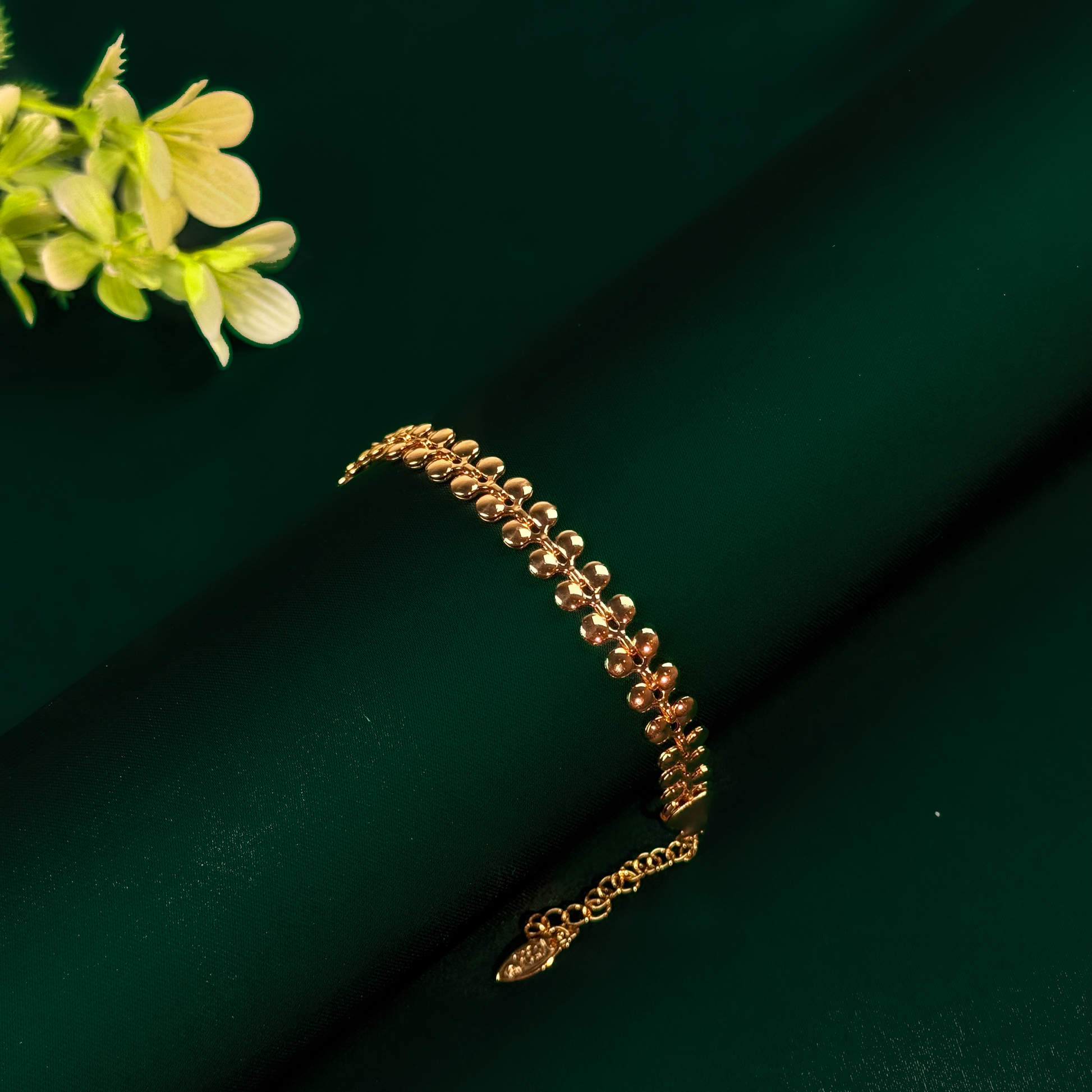 A beautifully crafted gold-plated Anklet featuring rounded petal-like links that create a smooth, reflective shine. Its elegant flow and premium finish make it perfect for both everyday styling and special occasions.