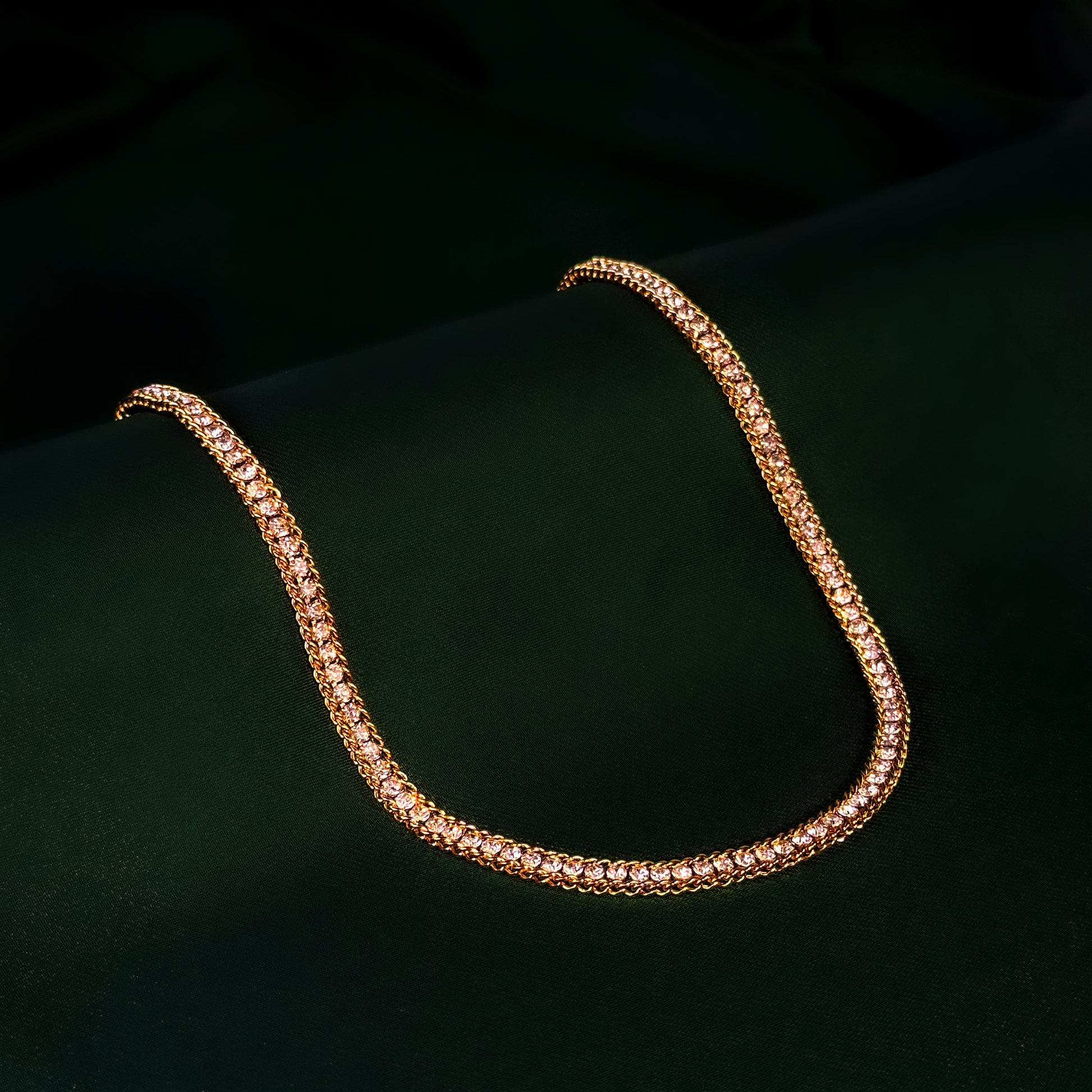 A luxurious tennis-style necklace designed to shine from every angle. Crafted with brilliant high-clarity stones set in a premium gold frame, this piece delivers a rich, glamorous look that instantly elevates your style. Its flexible, smooth chain ensures comfort while keeping the sparkle bold and constant. Perfect for formal events, weddings, and premium everyday fashion.